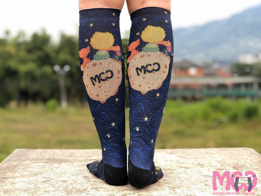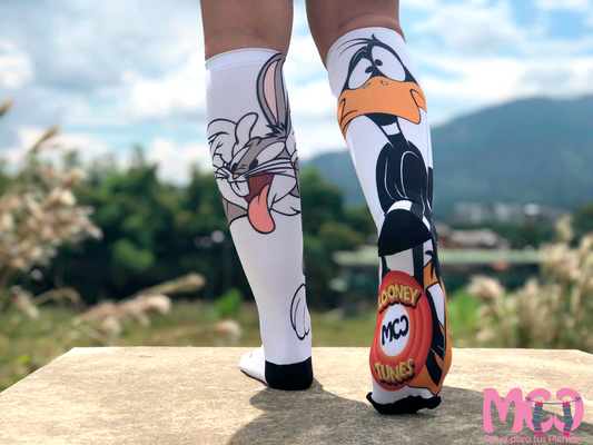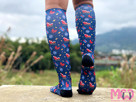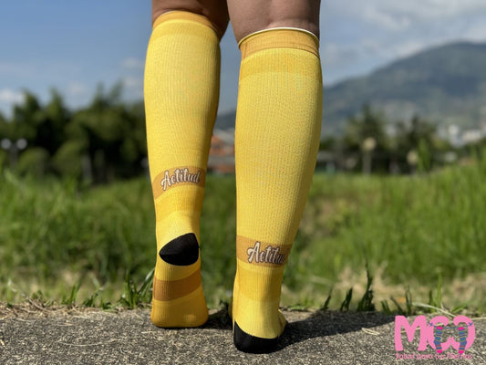 Medias de compresión tipo pantorrilleras, ideales para hacer ejercicio.